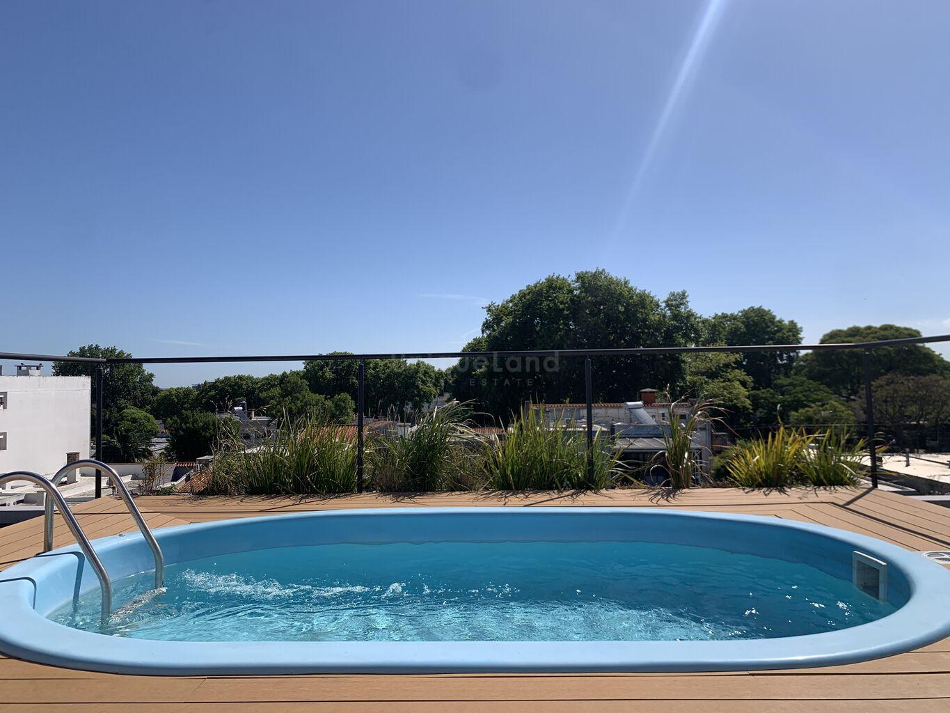 La azotea presenta un solárium con piscina y la posibilidad de adquirir 8 parrilleros independientes de uso exclusivo.