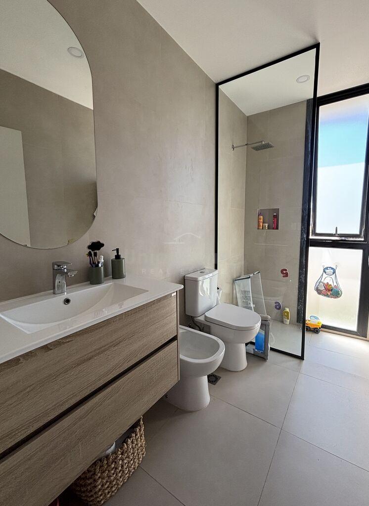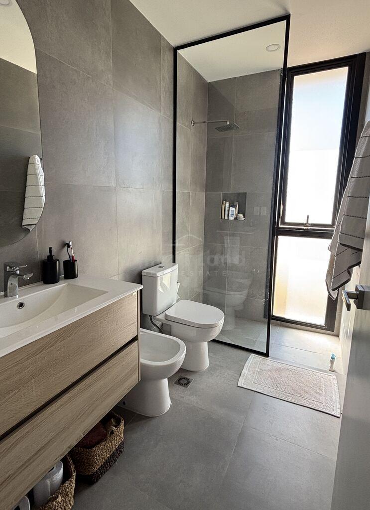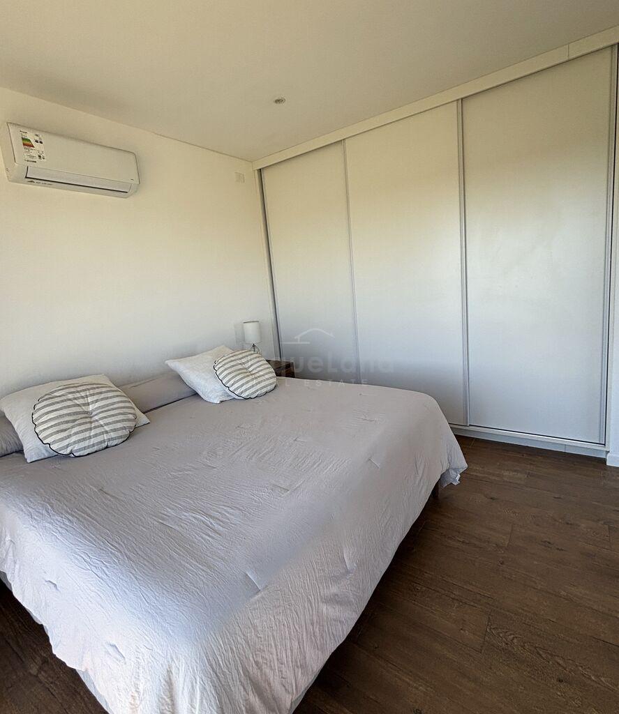 La zona íntima de la vivienda se desarrolla hacia la derecha del living-comedor, a través de un pasillo de distribución, donde encontramos un dormitorio al frente con buenas proporciones, el cual incluye un gran placard y aire acondicionado. Hacia el lateral, encontramos un baño completo, con terminaciones de alta calidad y con ventana para facilitar su aireación. Luego se encuentra el segundo dormitorio, que también tiene un placard y aire acondicionado. Hacia el final del pasillo de distribución, encontramos la suite principal con baño completo y un amplio placard. Dicha suite cuenta con amplios ventanales, muy buena iluminación y es muy espaciosa.