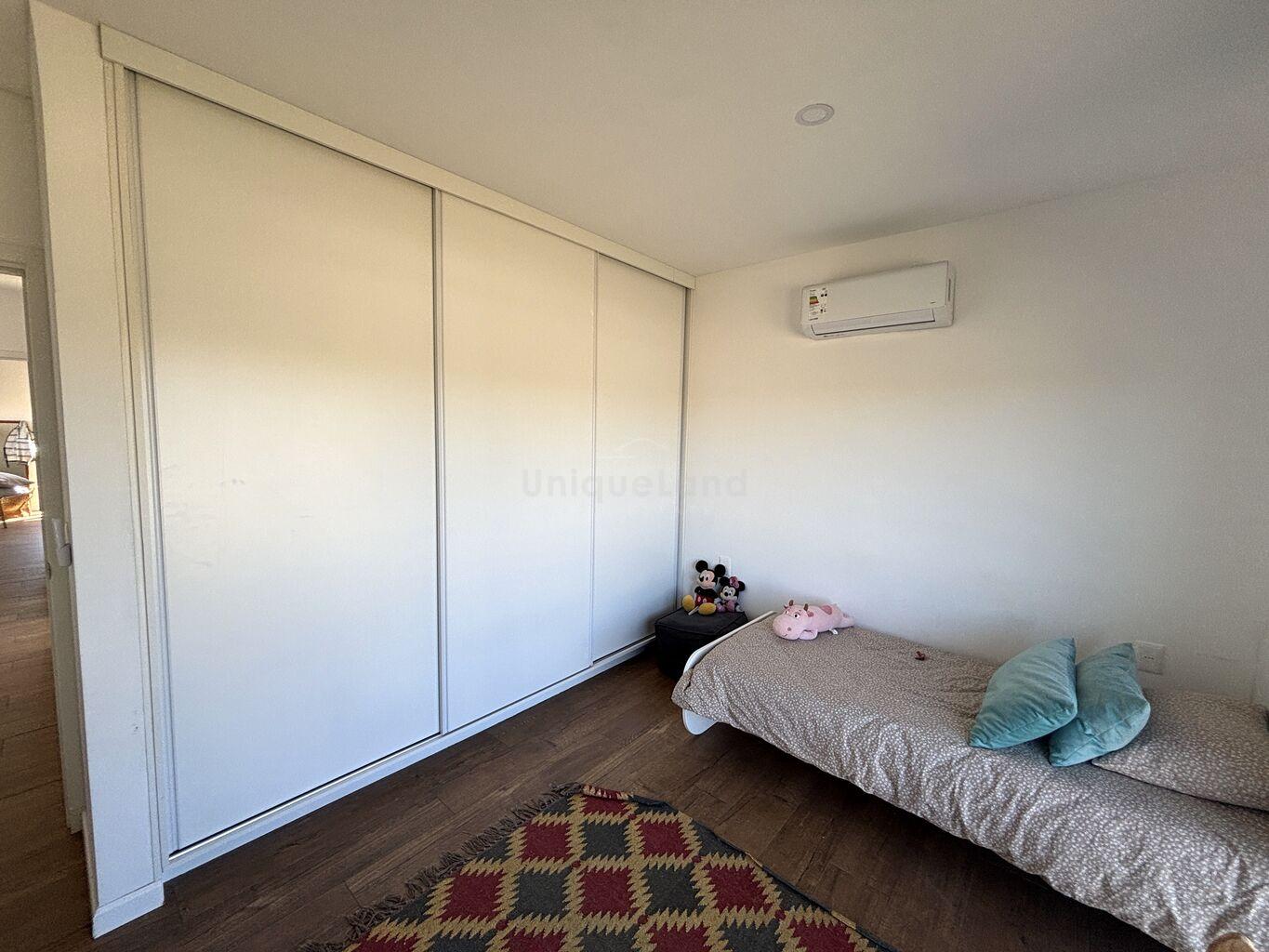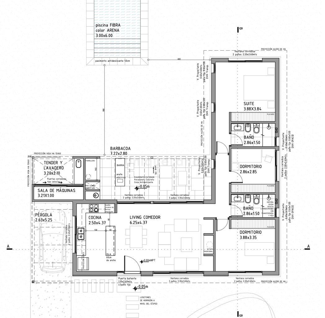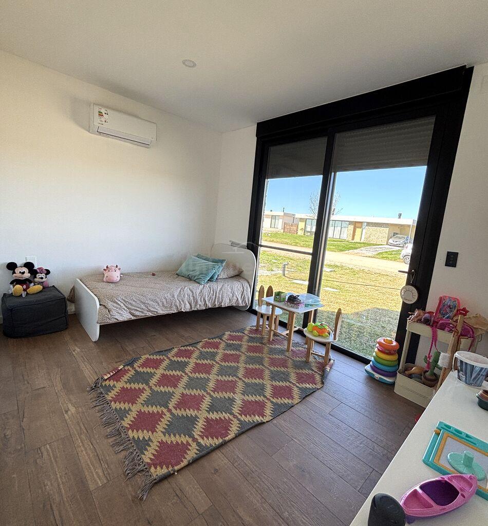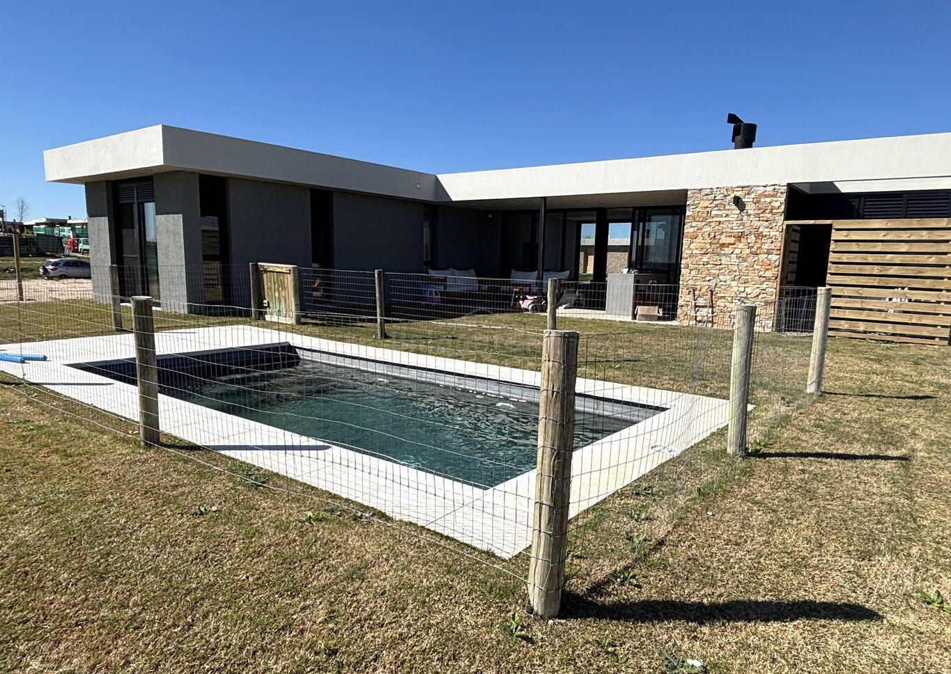 La propiedad cuenta con cochera para un vehículo y la fachada principal se encuentra revestida en piedra. El techo de la vivienda se realizó en vigueta y bovedilla para mejorar su acondicionamiento térmico. Cuenta con cielorraso de yeso en todos sus espacios interiores, pisos de porcelanato, ventanas de pvc con vidrio DVH y mosquiteros; a su vez en todos los dormitorios cuenta con cortinas de enrollar motorizadas y aires acondicionados. Otras características importantes de la vivienda es que cuenta con losa radiante por bomba de calor, con termostatos independientes por ambiente; riego automático el cual se abastece del pozo de agua general del barrio y hacia el fondo de la propiedad se ubica la piscina revestida en piedra de aproximadamente 3x6m, con buena orientación para su disfrute.