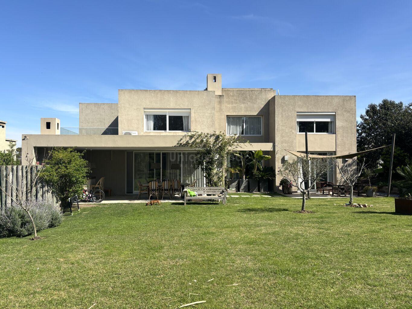 Moderna, cómoda, espaciosa y luminosa casa en venta en el barrio privado Altos de la Tahona, con excelente orientación norte, realizada con materiales de calidad. La vivienda se desarrolla en dos plantas sobre un terreno de 1214m2. En total presenta 285m2 construidos, de los cuales 247 son interiores. Es de construcción tradicional y presenta cortinas de enrollar de pvc en dormitorios de planta alta, ventanas de pvc con vidrios DVH, losa radiante eléctrica con termostatos independientes por habitación y cochera techada para dos vehículos.Al ingresar por la puerta principal de la propiedad, nos encontramos con un hall recibidor y una linda vista hacia el jardín privado de la vivienda. Hacia la izquierda se desarrolla el living-comedor principal, el cual cuenta con gran luminosidad y vistas hacia el frente y al fondo de la propiedad. Es el espacio perfecto para reuniones y el disfrute con familia y amigos, gracias a su amplitud y su practicidad.