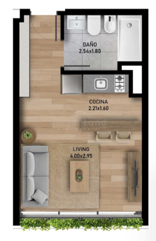 Los garajes y parrilleros de uso exclusivo, se venden aparte. En este caso el monoambiente cuenta con la opción de compra de un garaje en planta baja el cual cuesta U$S25.000.