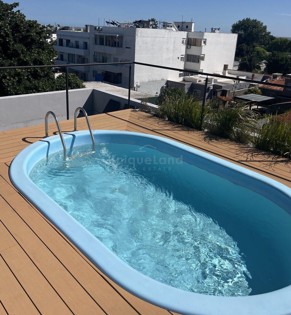 La azotea presenta un solárium con piscina y la posibilidad de adquirir 8 parrilleros independientes de uso exclusivo.