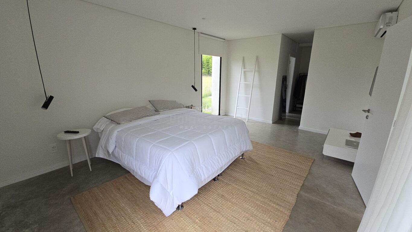 Moderna vivienda finalizada en el año 2024, ubicada en el barrio cerrado Cumbres de Carrasco, en Canelones. La propiedad se localiza en una manzana cercana a la portería principal, con ubicación privilegiada próxima a la zona de esparcimiento y recreación de la urbanización, con excelente orientación norte. El metraje del terreno es de 1003m2 y la propiedad cuenta con 245m2 construidos, de los cuales 190m2 son interiores y los restantes 55m2 de área exterior (pérgola y deck).En cuanto a las características principales, la vivienda cuenta con pavimento de cemento lustrado en la mayoría de sus espacios, estufa a leña, estufa de alto rendimiento, aires acondicionados en sus ambientes, ventanas de PCV con vidrio simple con mosquiteros y un parrillero exterior con barra. La propiedad es de construcción tradicional (muro doble de ticholo).